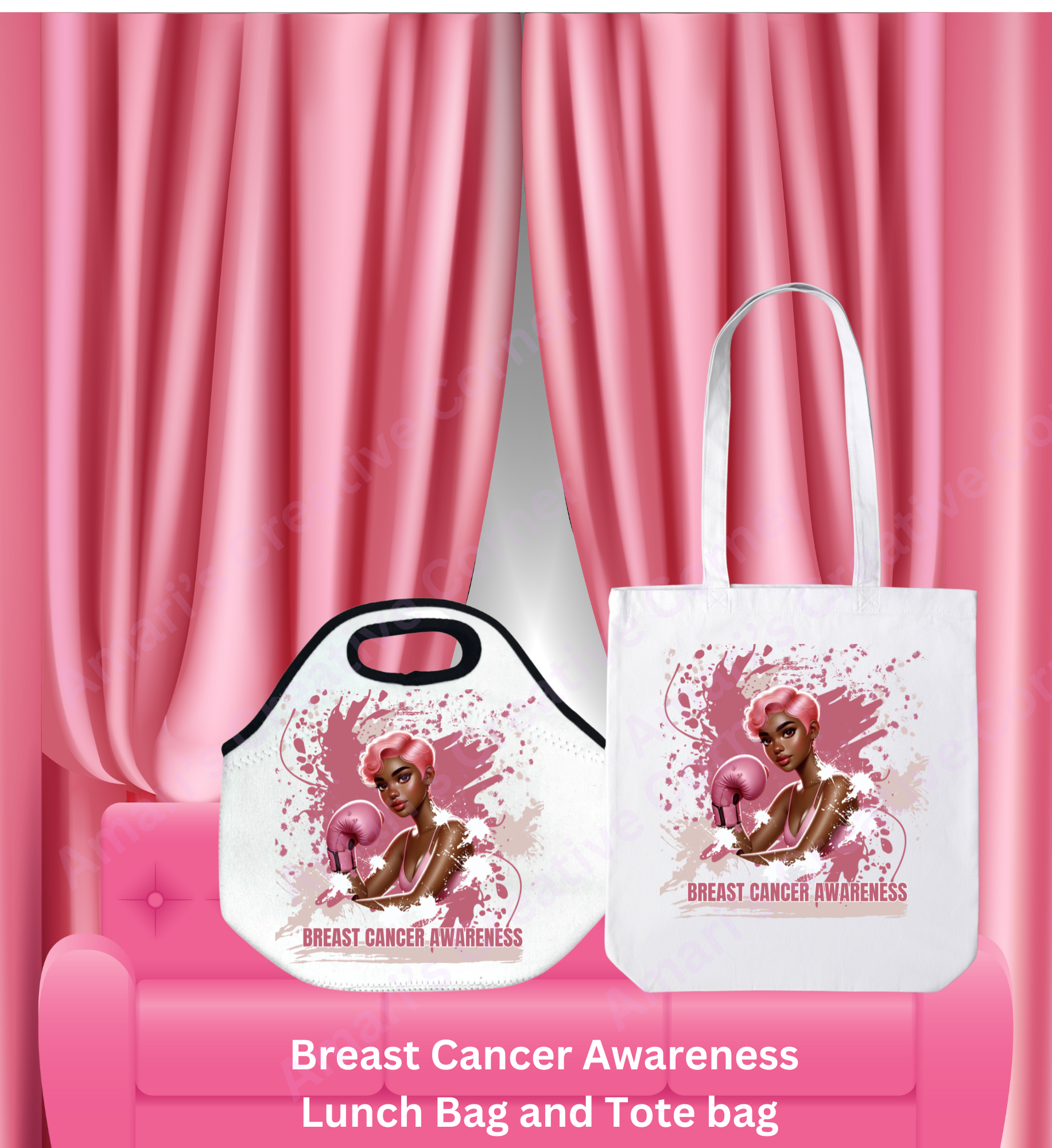 Stay stylish and support a great cause with our Breast Cancer Awareness Lunch Tote and Tote Bag Set! Made for the on-the-go warrior with a lustrous exterior and insulated interior, this set keeps your meals fresh and your hope passionate.