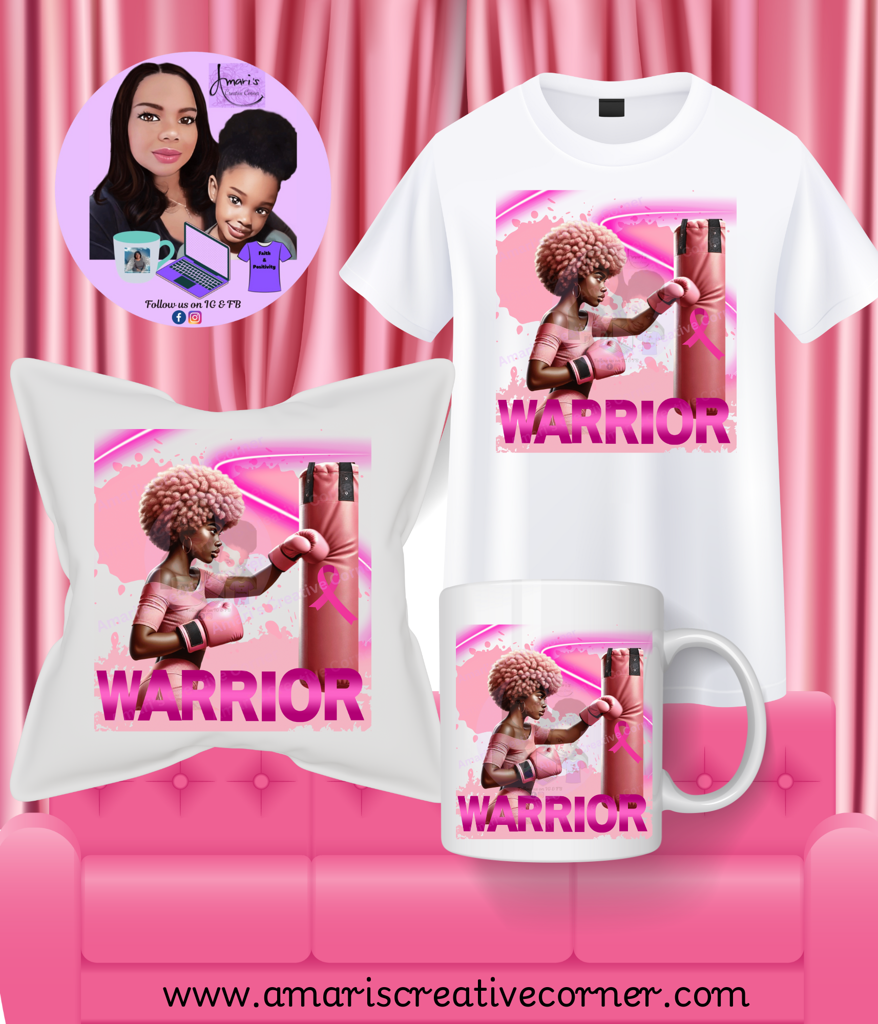 Show your support for breast cancer awareness with our bundle of a t-shirt, pillow, and mug, all featuring our exclusive design. A perfect way to spread awareness and inspire others to join the cause! Limited quantity available!