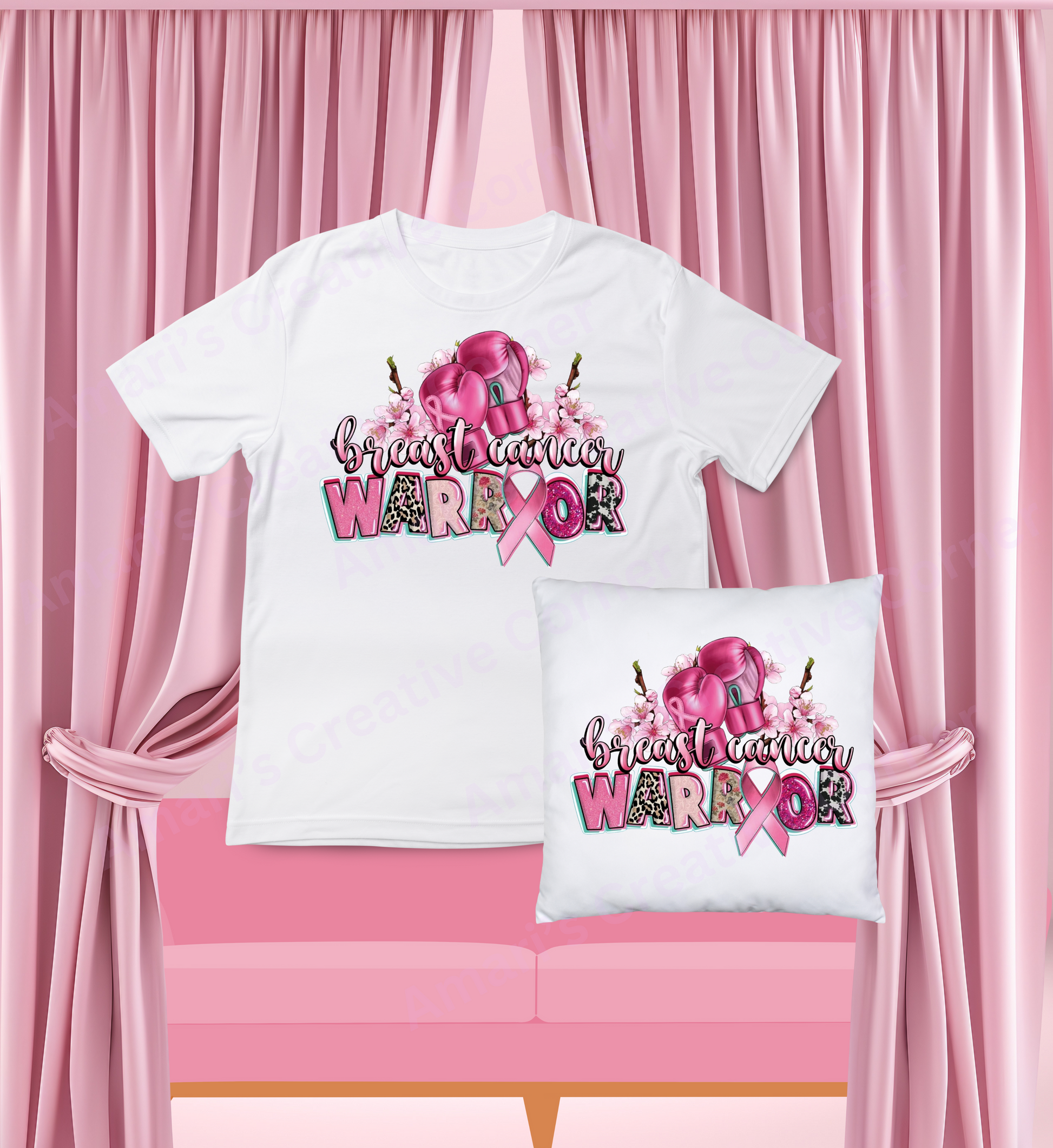 Show your support for breast cancer awareness in style with our matching bundle! This bundle includes a soft and comfortable short sleeve t-shirt and a coordinating breast cancer awareness pillow. Perfect for wearing or displaying at home.
