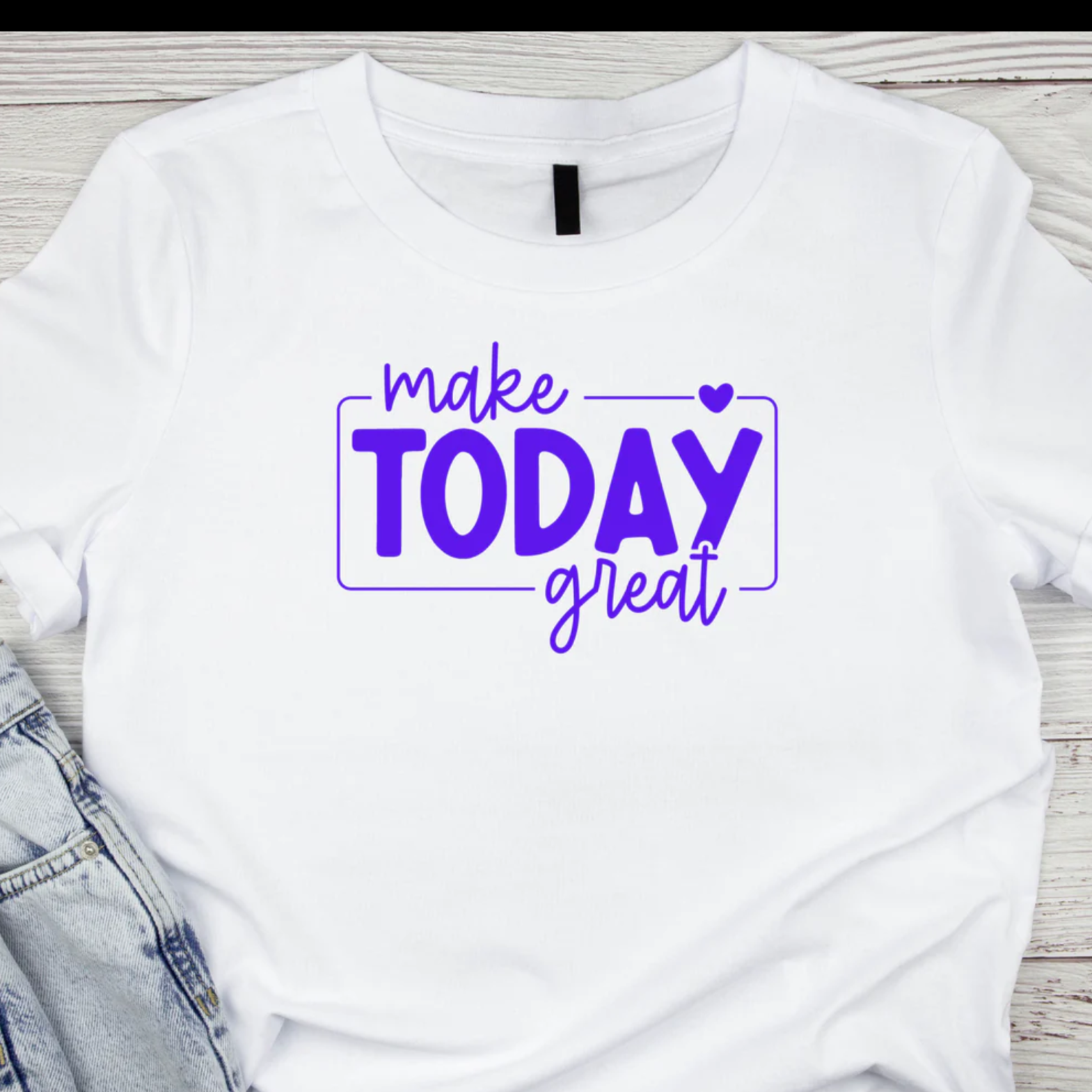 Experience the power of inspiration with our Make Today Great t-shirt! Featuring a bold design and high-quality fabric, this t-shirt is sure to inspire anyone who wears it. Show your passion for making the most of every day with our Make Today Great t-shirt!