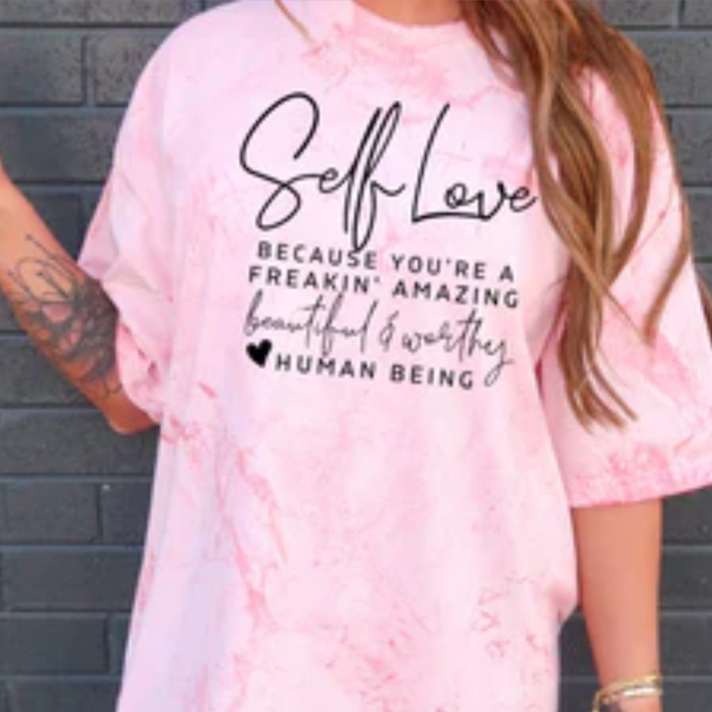 Embrace self love with our t-shirts! Made from high-quality materials, these t-shirts serve as a reminder to love and value yourself. Feel confident and inspired while making a statement with our self love t-shirts. Elevate your style and self esteem with every wear.